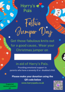 Make a donation – Every contribution, big or small, makes a real difference. You can donate directly to our Christmas appeal here: Harry’s Pals Christmas Heroes – JustGiving. Or scan the QR code above.